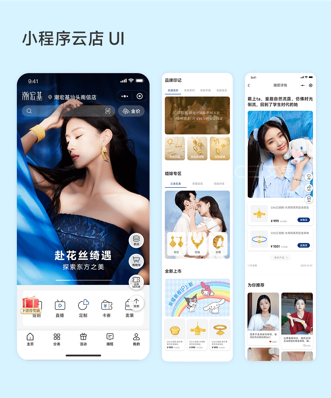 创意十足的朋友圈宣传海报设计,融合潮宏基珠宝的品牌特色和品牌理念,每一张海报都成为用户心中的一抹亮色。