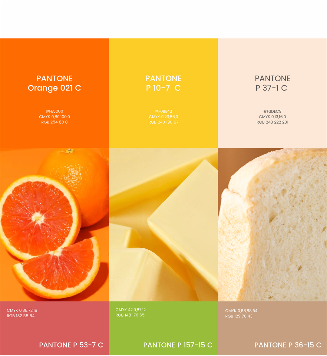 品牌符号以鸟、桔子和爱心型的吐司造型构成。